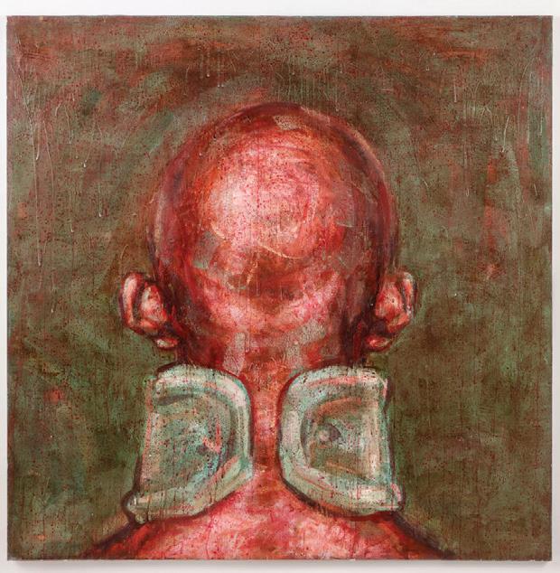 404. Adel Younesi (Iranian, b. 1985) Untitled, oil painting on canvas, signed. Unframed. Size: 35.5'' x 35.5'', 90 x 90 cm (stretcher).