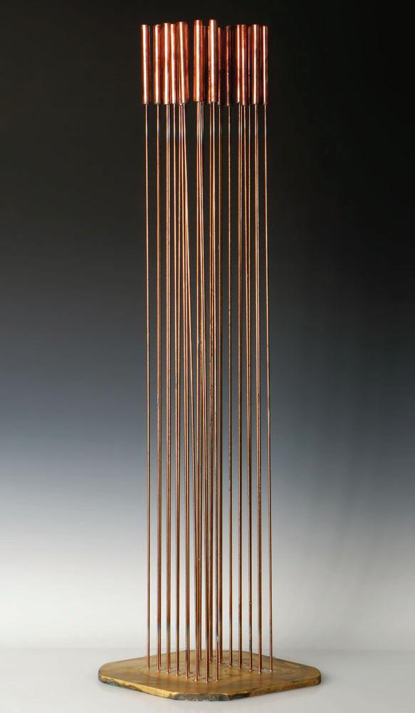 32 . Val Bertoia (American, b. 1949) Sonambient Sculpture (B-2883), brass cat-tail tops silvered to beryllium copper rods, silvered to brass base. Size: 33.5'' x 9.75'' x 10'' (85 x 25 x 25 cm).