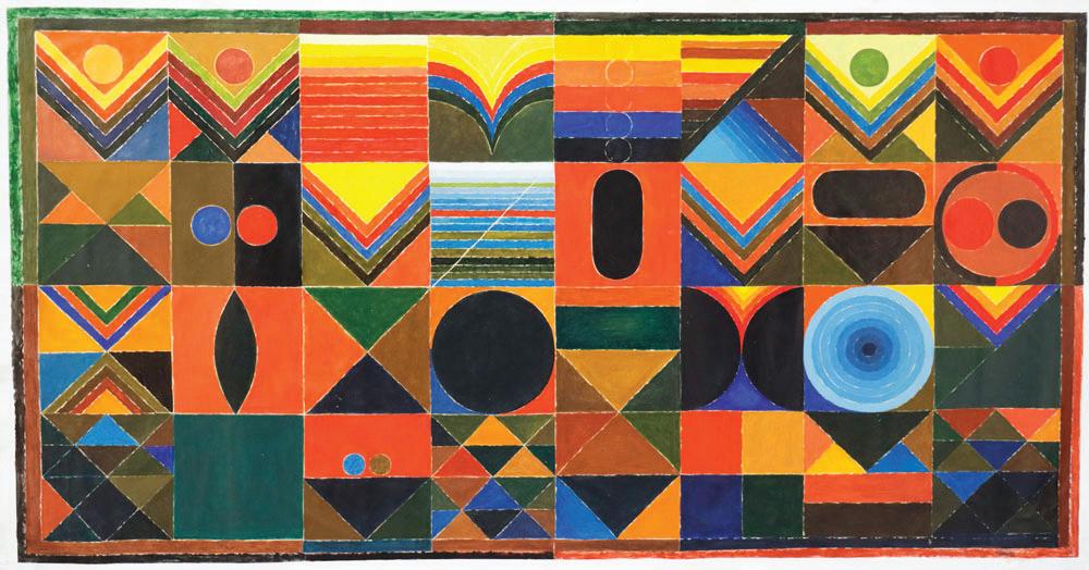 Abstract Cityscape, 1912, mixed media on paper, signed and dated. Framed. Size: 8.25'' x 6'', 21 x 15 cm (sheet); 15.5'' x 13.25'', 39 x 34 cm (frame).