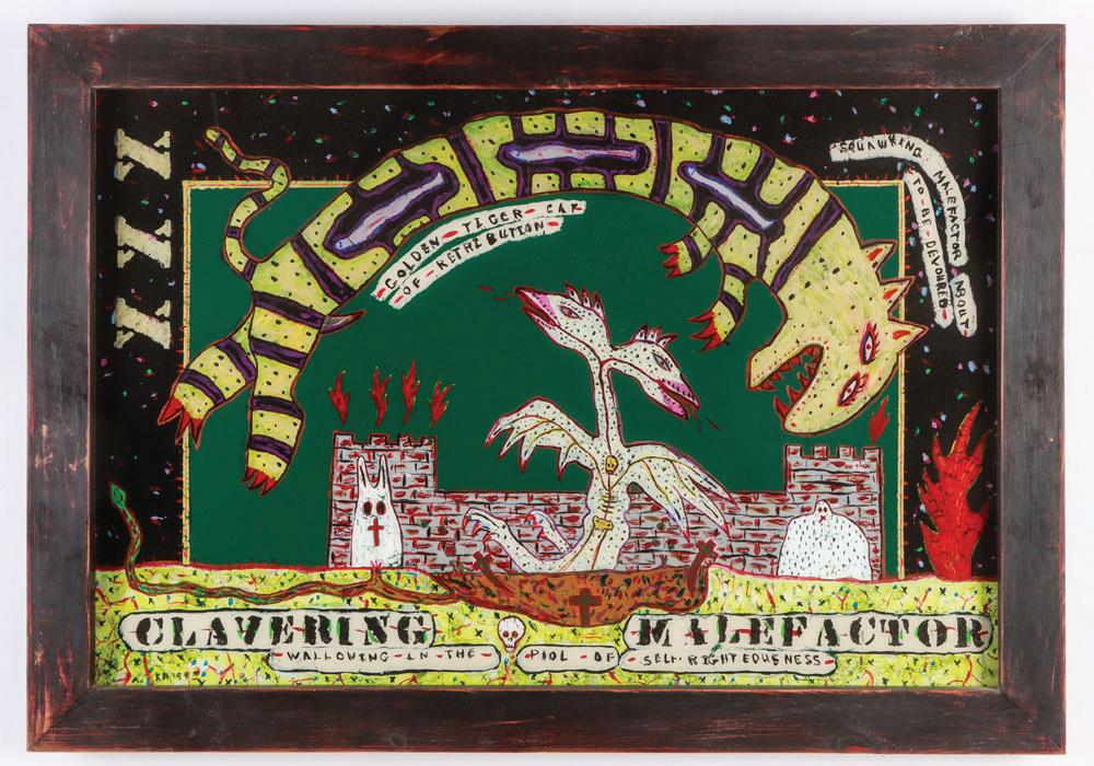 2 . Gregory "Mr. Imagination" Warmack (American, 1948-2012) Mixed media sculpture, 2004, signed and dated. Size: 16'' x 11'' x 2.5'' (41 x 28 x 6 cm). Proceeds of the sale of this lot to benefit Intuit.