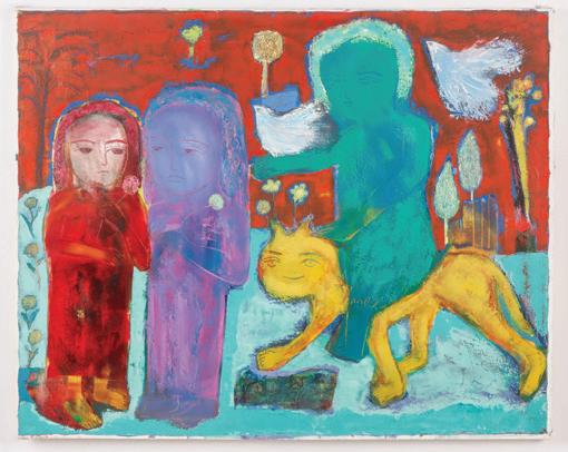 403. Bahram Dabiri (Iranian, b. 1950) "Innocence", 2009, acrylic painting on canvas, signed and dated. Unframed. Size: 47'' x 39'', 119 x 99 cm (stretcher).