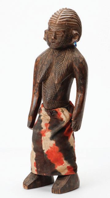 51. Puguli or Lobi Bateba Shrine Figure. On stand. Wood, natural and commercial pigments, sacrificial residue, hair. Size: 32’’ x 7.5’’ x 6’’ (81 x 19 x 15 cm).
