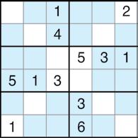 1. The easier 4x4 grid uses the numbers 1, 2, 3, and 4 once in each column and row. The harder 6x6 grid uses the numbers 1 to 6.Complete the grid so that every row and column includes the numbers, 1-4 for the easier puzzle and 1-6 for the harder one.
