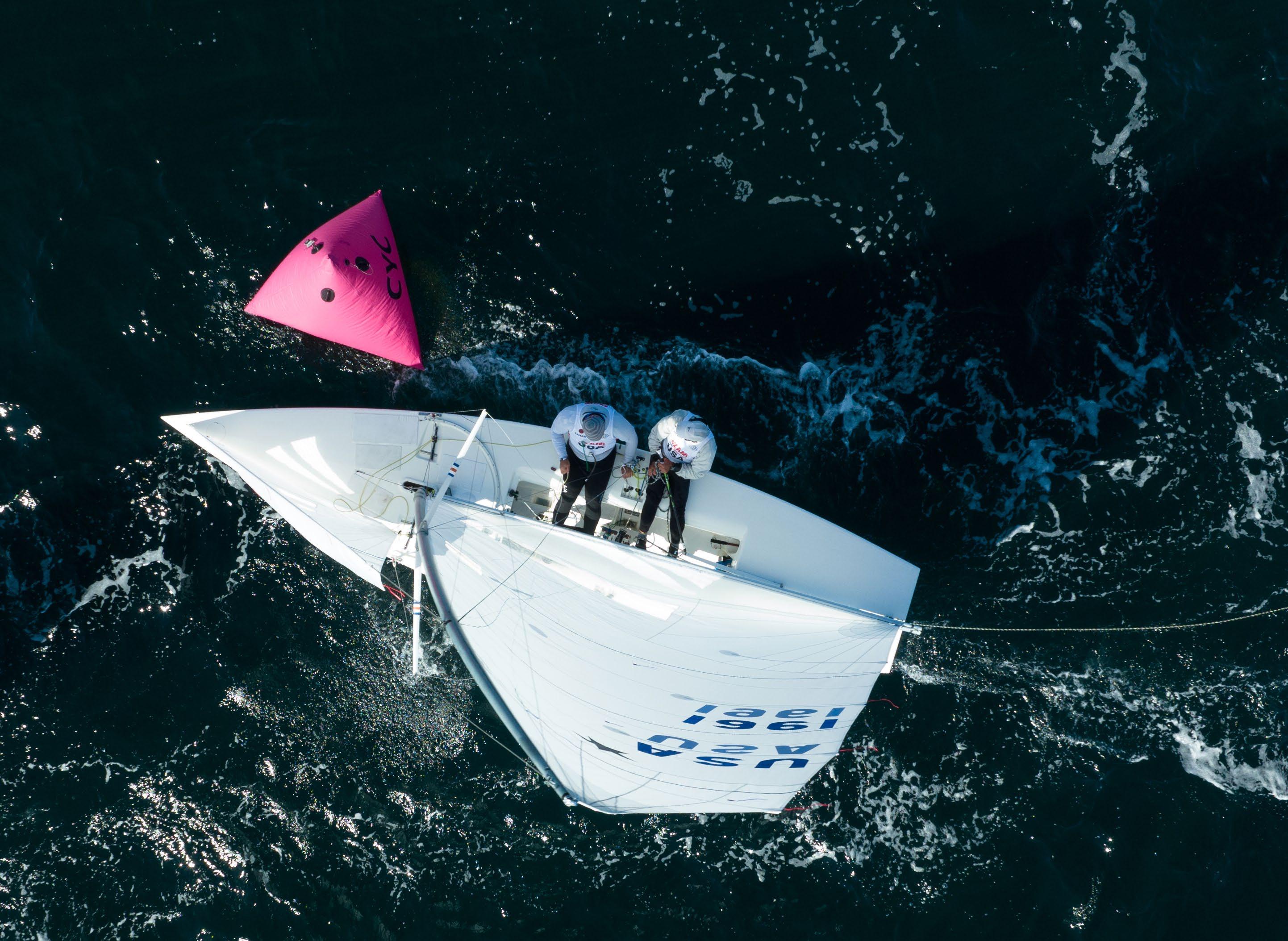 Anticipating the wind would go left, Schönherr/Koy opted for the port pin end start. While the shift didn’t materialize, their positioning and boat speed kept them ahead, with Negri/ Lambertenghi on their tail the whole race.