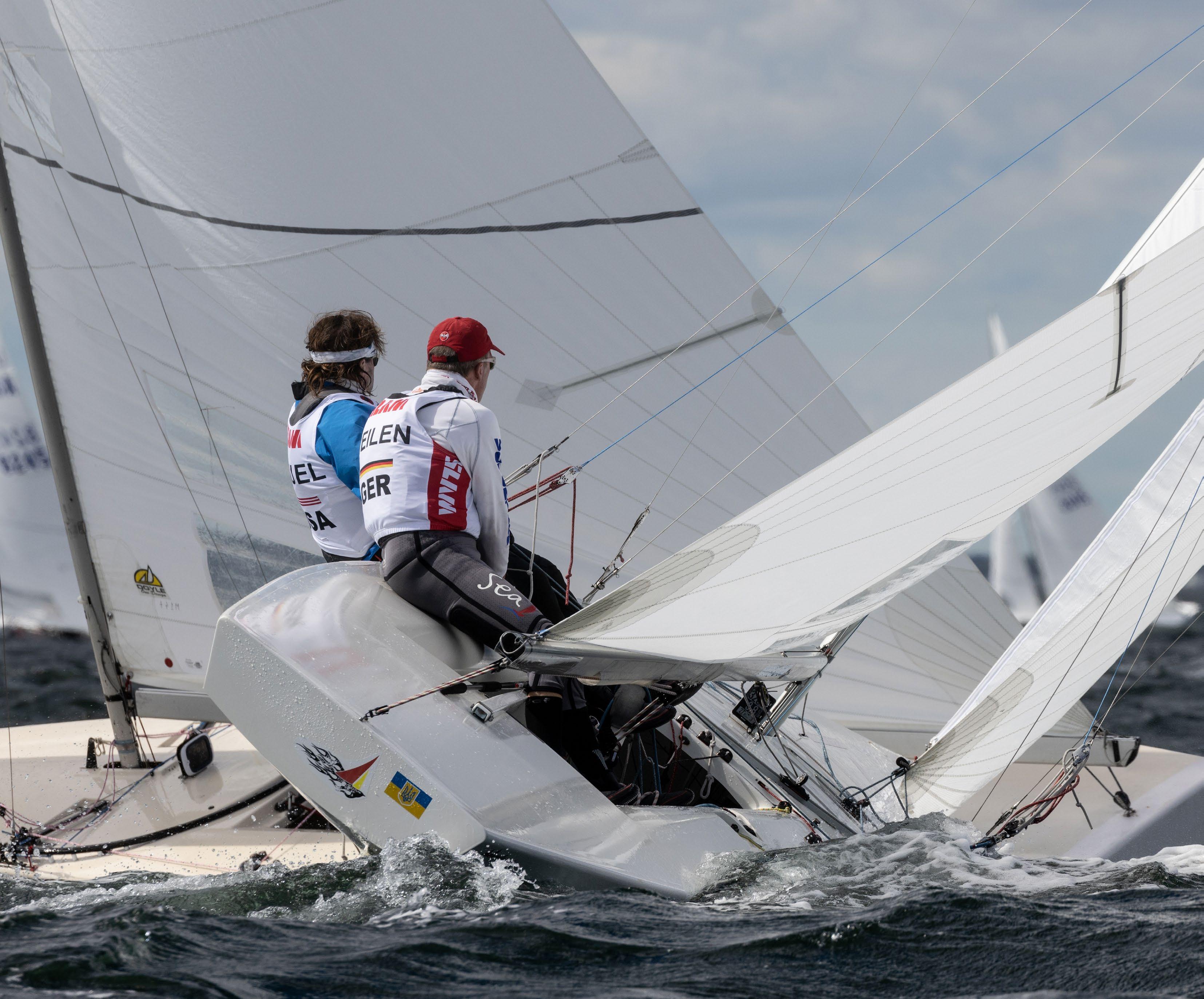 “We had a great day today,” grinned Schönherr on the pair’s ability to hold off a fleet packed with World Champions. “We had a super start and then we had a tough fight with all the gold Stars breathing on our necks. We managed to stay ahead, so we are proud of that.”