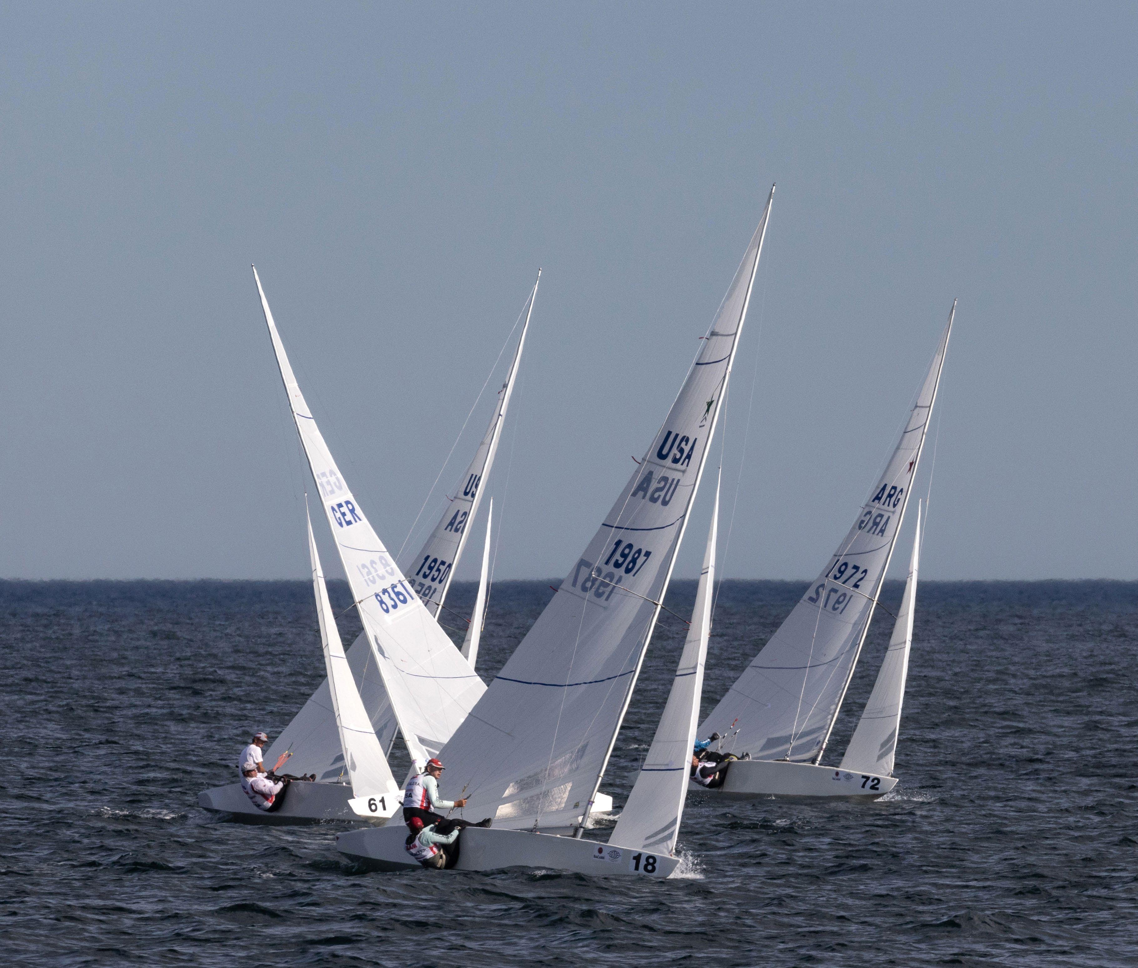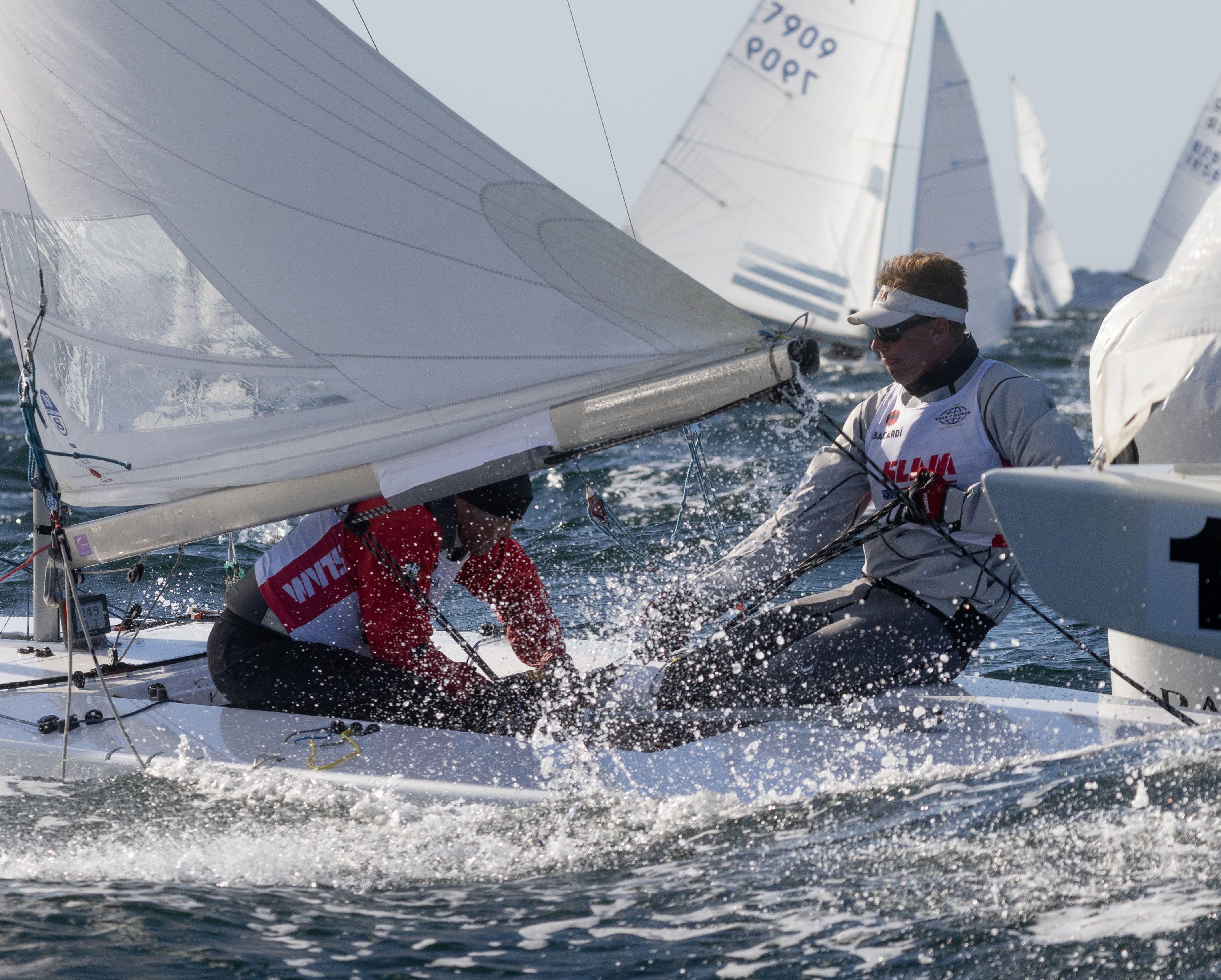 Breezy and shifty conditions offered plenty of opportunity for position changes. The intensity required was huge though, as the 20-degree shifts played through the fleet, with gains and losses as teams tried to keep with the pressure and make adjustments to stay in the chess match. The unpredictable breeze demanded a frequent pace change and racing style along with two course changes in a textbook challenge for Star sailors.