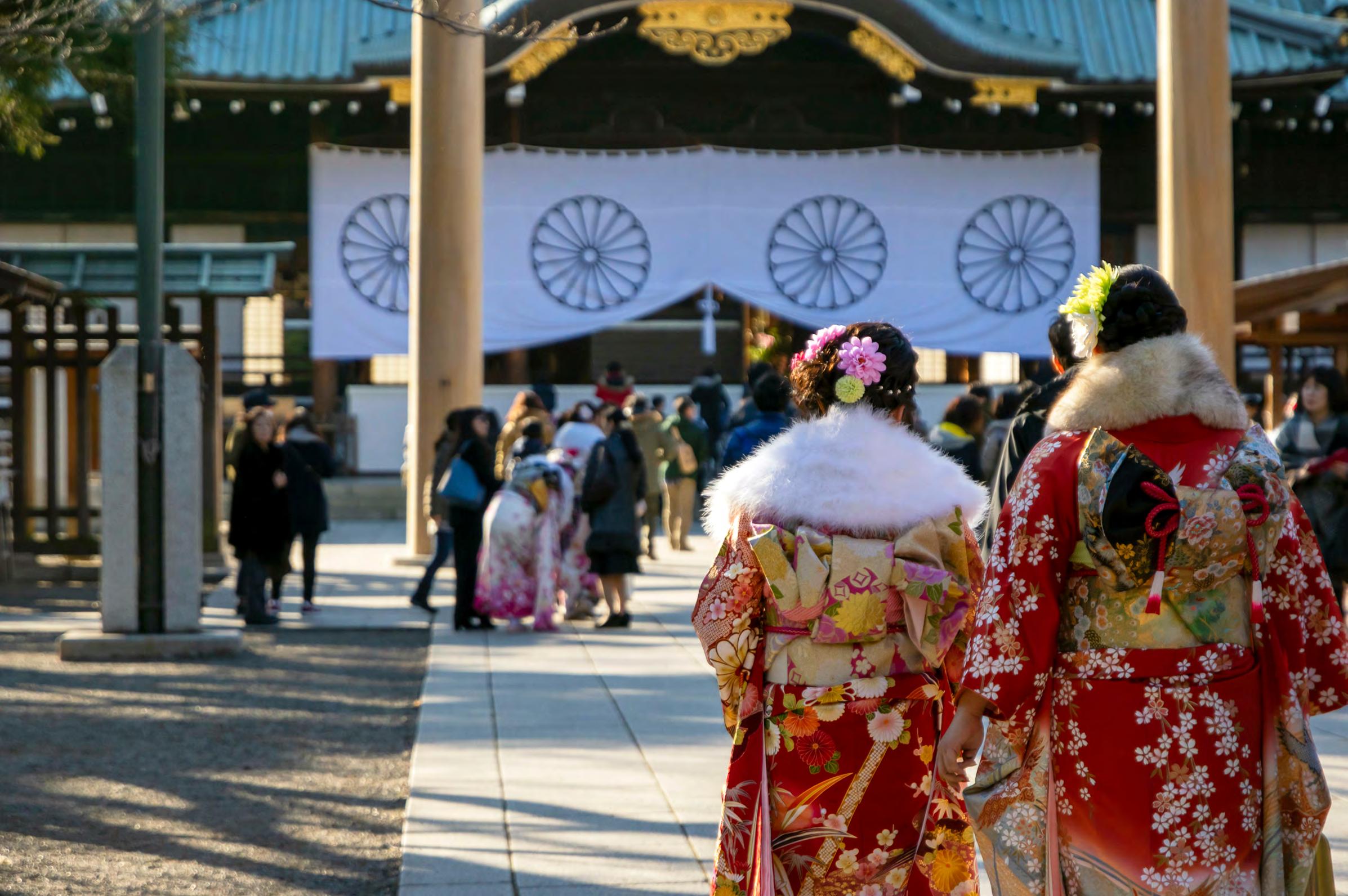 Tese visits, which begin at midnight in the early morning hours of New Year’s Day, are made in extremely large numbers. Meiji Shrine in Tokyo, Tsurugaoka Hachiman Shrine in Kamakura and Yasaka Shrine in Kyoto are three of the largest and most well-known venues in mainland Japan, each receiving several million visitors over the frst three days of January. On Okinawa, three of the most popular are Naritasan Fukusenji in Nakagusuku Village, Naminoue Shrine in Naha and Futenma Jingu in Ginowan City.