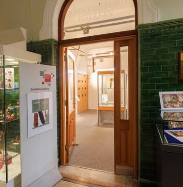 Beside the temporary exhibition gallery is a wood and glass door which leads to the lift and toilets.