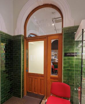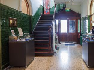 In this area there are green tiles and a window into the wall where you will see the Heritage Officer or other staff members working.