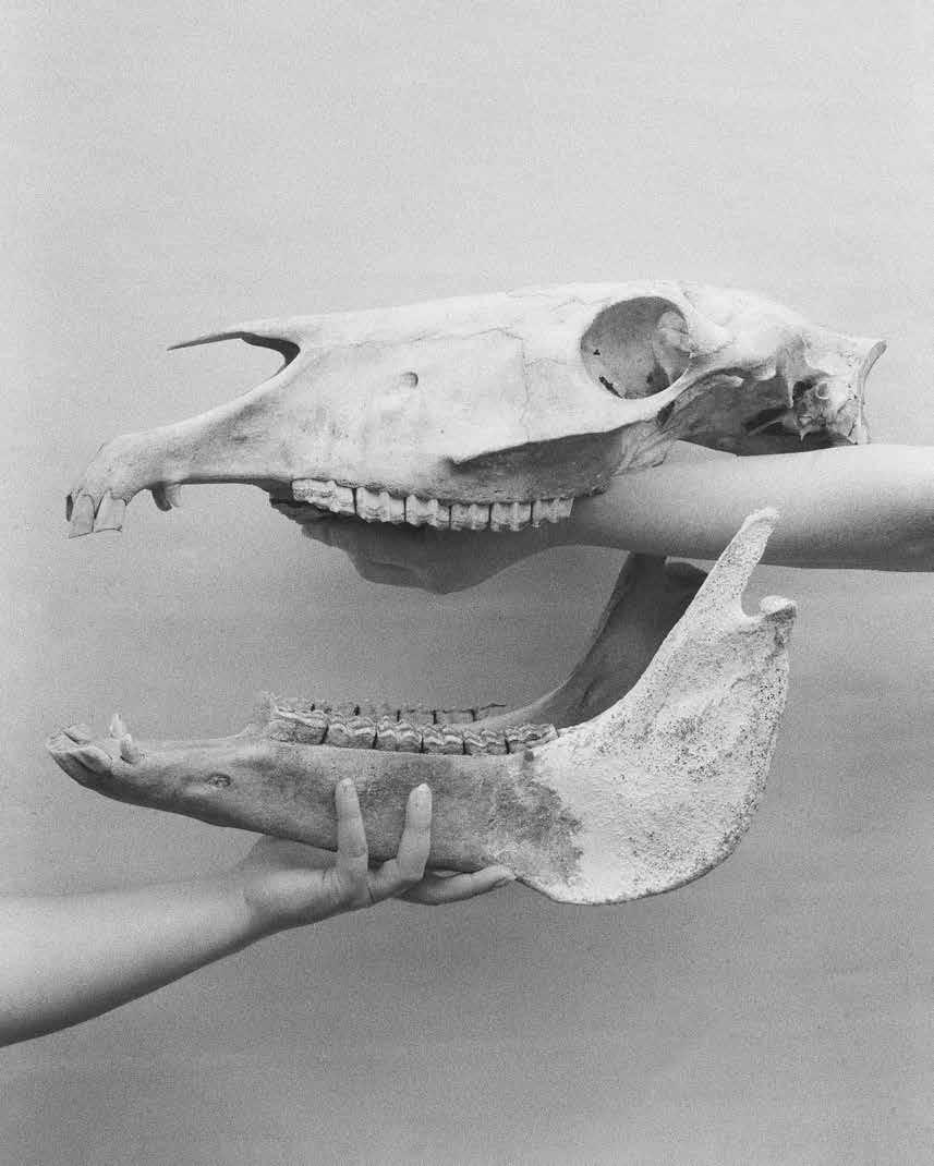 Avec As Dusk Crawls (« Alors que le crépuscule s’installe »), de la Britannique Polly White, le récit de soi bouleverse une nouvelle fois en croisant des préoccupations écologiques. Dans une nature morte somptueuse qui met en scène de jeunes mains soulevant les deux parties d’un crâne de cheval, des souvenirs et sensations propres à l’artiste sont réactivés : l’enfance à la campagne, le rapport harmonieux à la faune et à la flore, mais aussi le déclin, en quelques années, de ce paysage séminal, vidé peu à peu de sa substance par les excès de l’agriculture intensive. Cette vision saisissante, à l’image de toutes les autres qui ont été choisies, mises en résonance puis agencées par Bénédicte Blondeau et Anne Immelé à la faveur d’un accrochage fluide et cohérent, renferme une véritable justesse des émotions. Elle peut s’envisager comme un trait d’union évocateur entre toutes ces choses dont nous pouvons encore nous porter garants dans un « ici et maintenant » du monde – le souhait, par exemple, d’une coexistence plus harmonieuse et douce avec le vivant – et cet « au-delà » de l’espace et du temps dans lequel la photographie nous permet, comme par magie, de nous immerger.