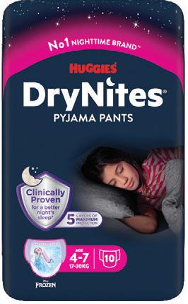 DryNites® nattunderbyxor finns att köpa i de flesta stormarknader och på apotek, och finns i 3 storlekar: 3–5 år, 4–7 år och 8–15 år.