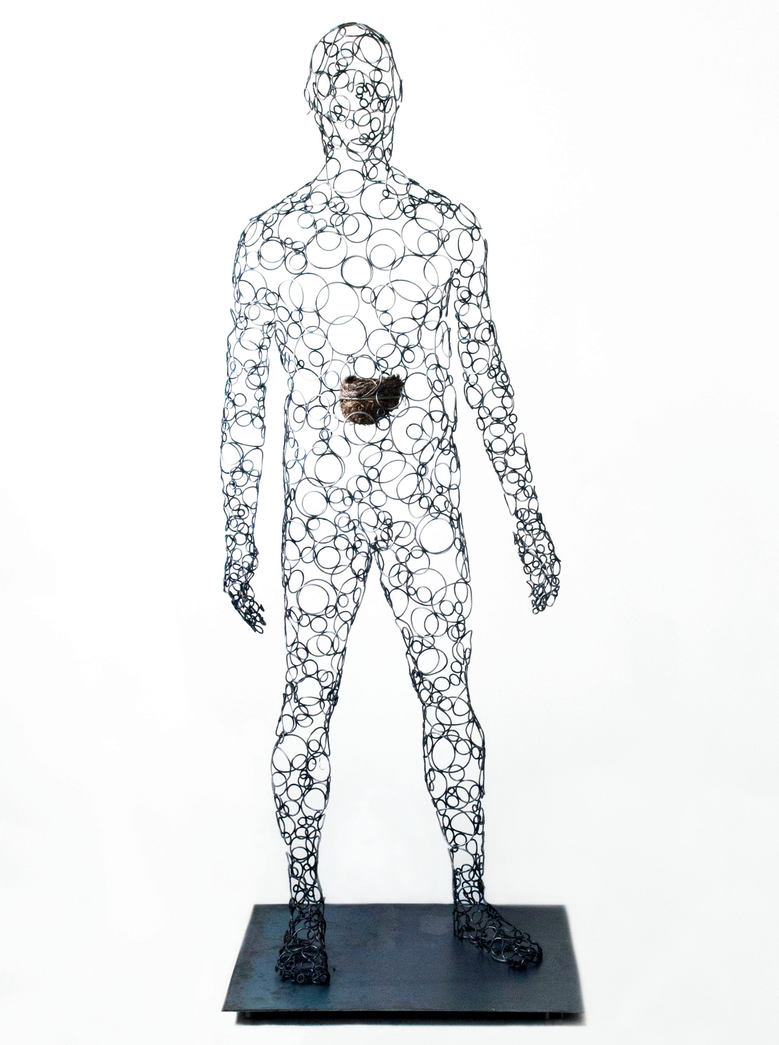 Paul Villinski. Self-Portrait, 2017. Powder-coated steel, bird’s nest, with powder-coated steel pedestal.