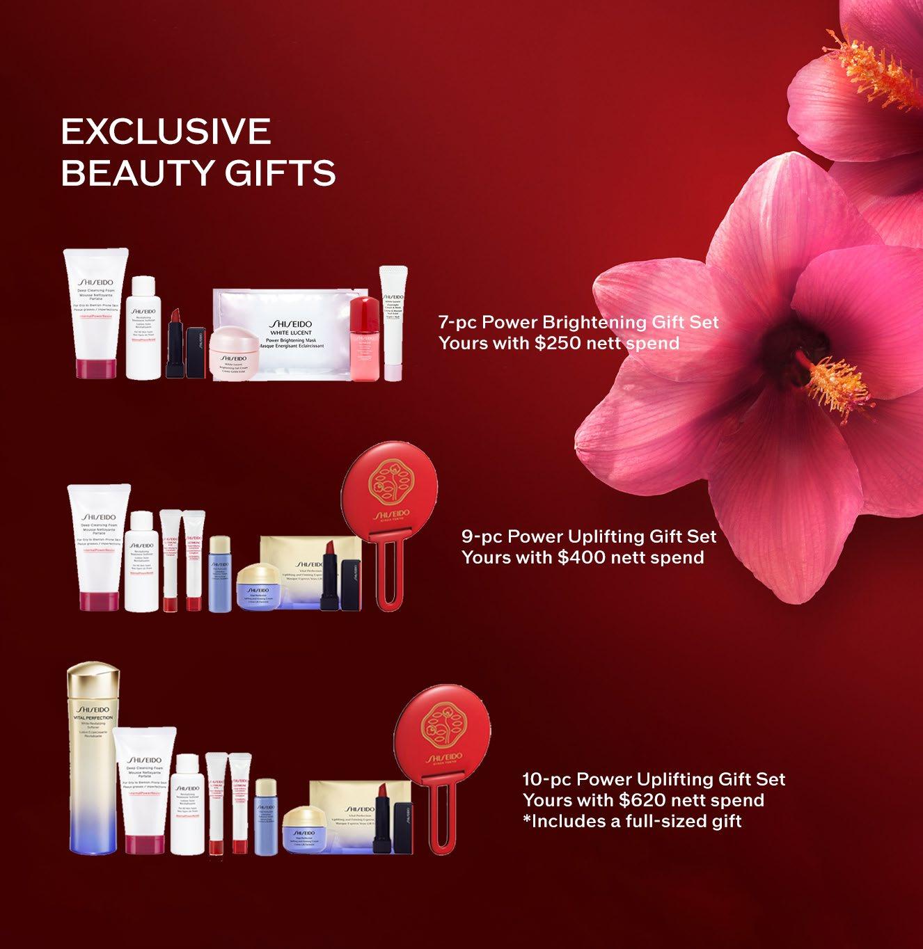 DIRECT 15% OFF Receive 4-pc Gift Set (worth $93) with purchase of any Shiseido’s TOP 10 BEST SELLERS (Not stackable with promotion sets) 57% SAVINGS UP TO TOP 10 BEST SELLERS