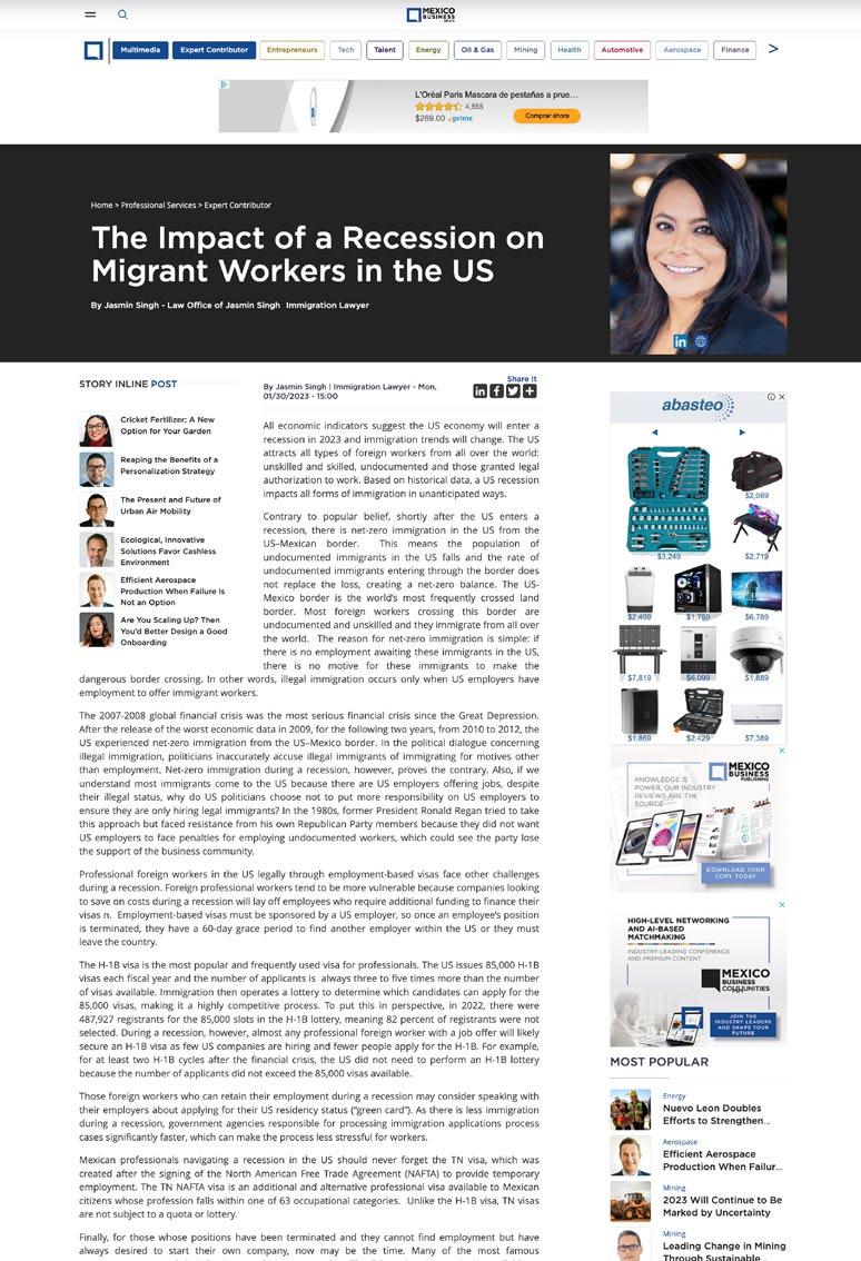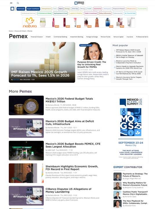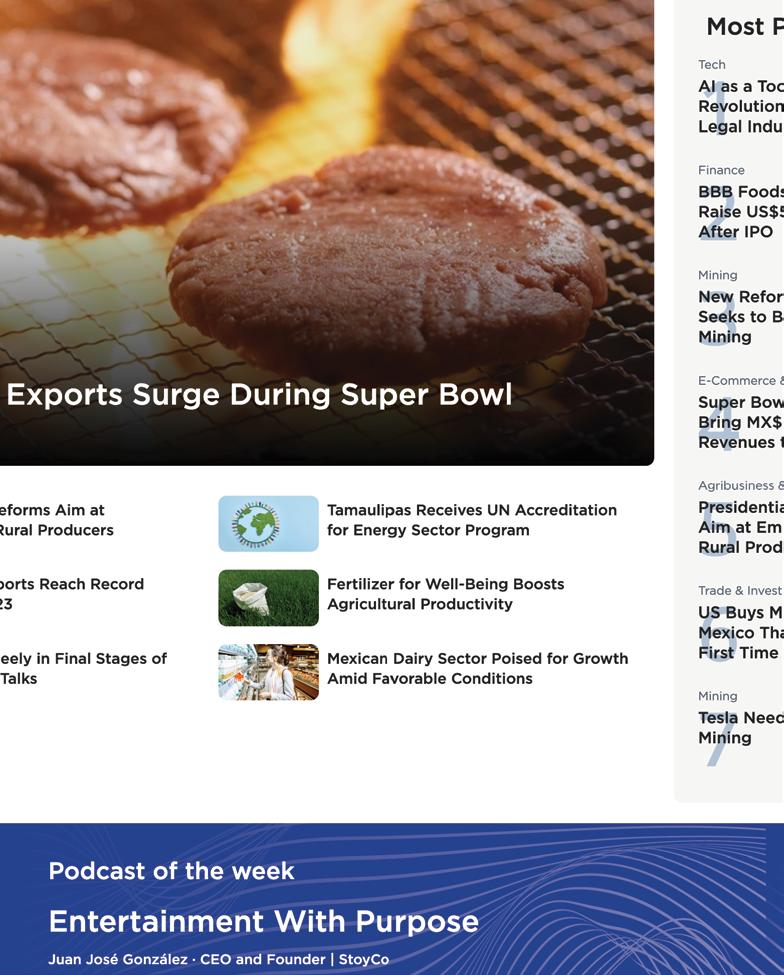 Mexico Business News is Mexico’s leading and fastestgrowing source of first-hand, English-language business information on Mexico. Our unique and reliable content truly sets us apart, attracting a rapidly-growing audience consists of business and political leaders shaping the future of Mexico’s main industries.