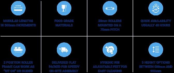 With over 250 different combinations of length, width, height and roller type, the system can be easily tailored to suit your requirements using our on-line “Build Your Own” function. You can even change the roller position to “sit on” or guided.