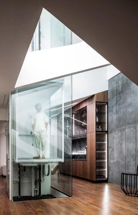 Each bedroom has access to the rooftop terrace, as well as its own private mezzanine with an impressive triangular window, an ideal spot for stargazing. The master bedroom and private office completes the upper level and enjoys the best view of the lake through its oversized windows.