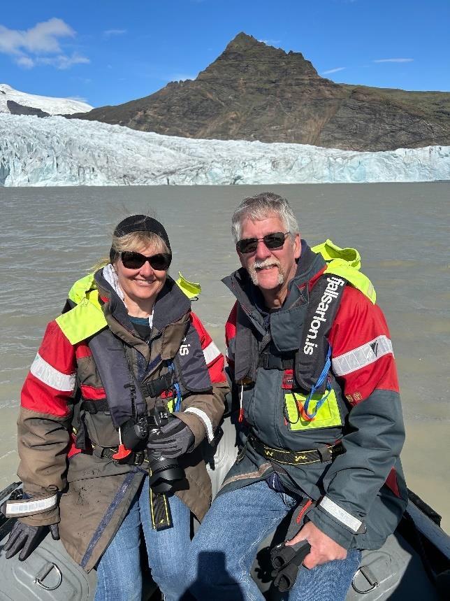 Photograph of Sara Pearson and her husband Adam Heft, fellow geologist, in Iceland at Glacier Lagoon.