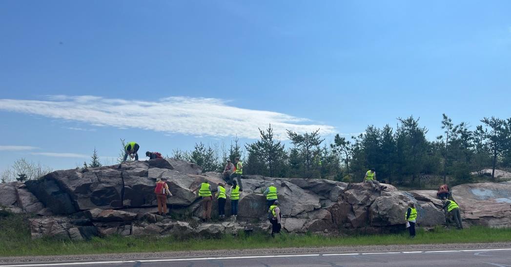 ILSG 2024 also had ample opportunities to learn about Michigan’s geologically diverse terrains across the northwestern U.P. by offering excursions on the first and last day of the conference. Out of the many field trip opportunities, two MGS geologists decided to take on the northern portion of the Southern Complex granitoids, gneisses, and migmatites excursion led by Dr. Chad Deering from MTU’s Department of Geological, Mining Engineering and Sciences. Most of the field trip was spent exploring a variety of different outcrops exposed in road cuts along M-41 and M-95 between Baraga and Humboldt townships.