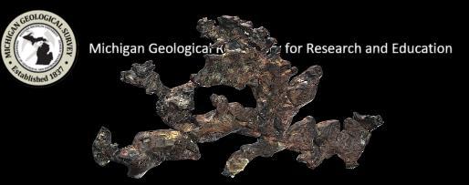 We are beginning by focusing on an historic MGS collection which was collected at outcrops around Michigan and represents many geologic formations. Some samples were even collected during testing for the building of the Mackinac Bridge and represent an important part of Michigan’s history (Figure 4). Another collection of focus is the Steve Wilson collection, which is a diverse collection of high-quality mineral and fossil specimens donated to MGRRE several years ago (Figure 5). Currently, more than 40 samples have been scanned and published, with many more in the works. This program will provide access to rocks, fossils, and other specimens which could be used in research, education, and by the general public, increasing awareness of Michigan geology and perhaps inspiring future generations of geoscientists.