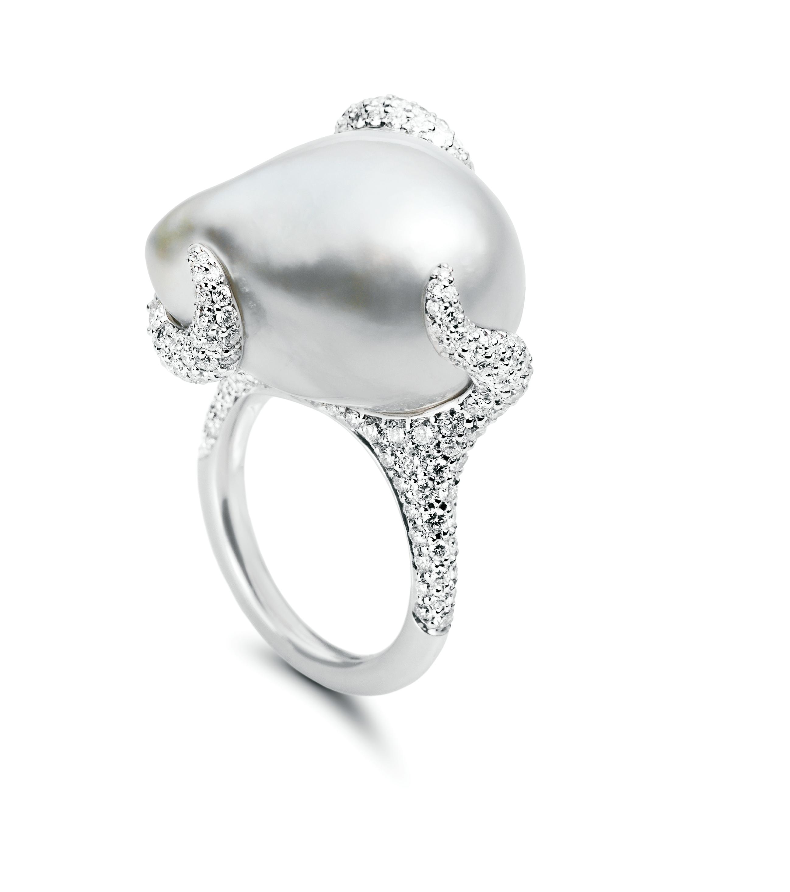 Each jewel, seemingly a polar opposite of the traditional view of pearl jewelry, is a conversation piece.