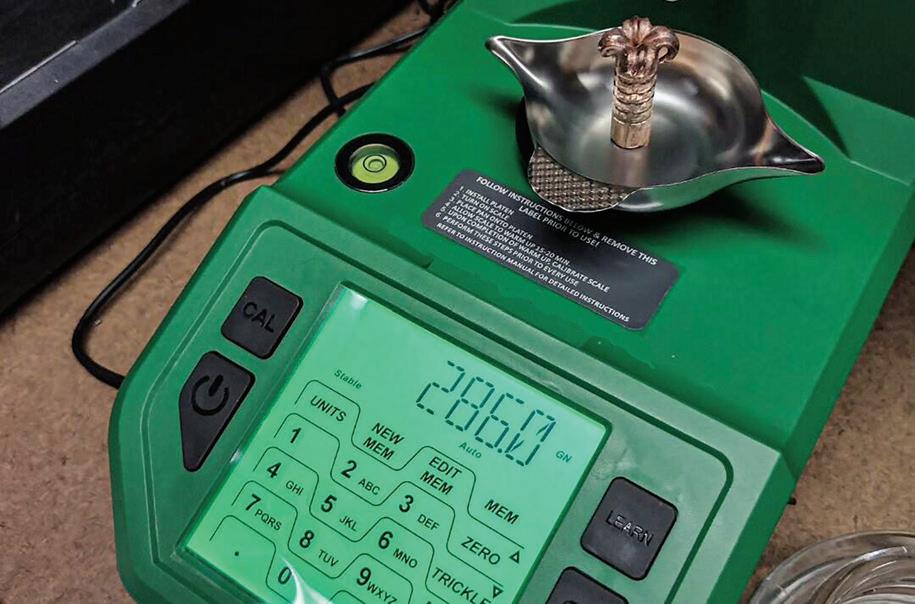 The components for Allen’s .40-65 loads included Starline cases filled with 63 grains of Swiss 1½ Fg powder, topped with a .060-inch Walters’ wad, and finished off with a 393-grain bullet (Accurate Molds’ No. 40-385P). The bullet was cast from a 20:1 lead-tin alloy, then wrapped with 9-pound onionskin paper, bought from Buffalo Arms, and ignited with CCI standard large pistol primers. That has to be a fine combination.