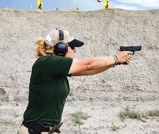 students, Russo knows very well that lives are at stake, so her subject matter must be spot-on! She tested both knives, carrying them as she does her self-defense tools, with a firearm on her right side and a backup on her left. The Helitack was her logical choice, as she was able to access and open the knife in about 1½ seconds.