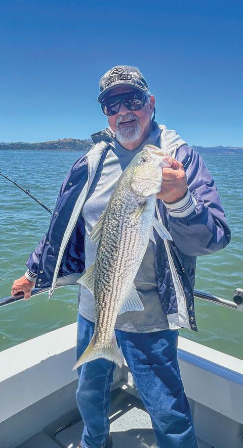 Paul Boudreau had a great spring day on San Francisco Bay, catching this keeper striped bass as he and his buddies also scored some delicious halibut. June is an ideal time for potluck trips from Bay Area harbors. (MARK FONG)