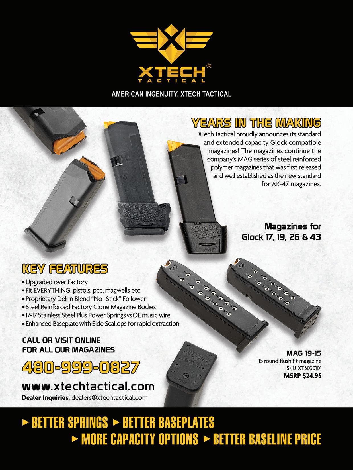 Fast forward to 2025 and XTech is one of the industry’s most respected outlets for magazines, grips and other accessories. Among their signature product lines is what they call the Freedom Series, which includes Glock-compatible magazines, mags for AK-47s and AR-15s, as well as a p365 +0 extension.
