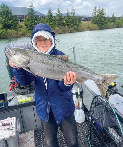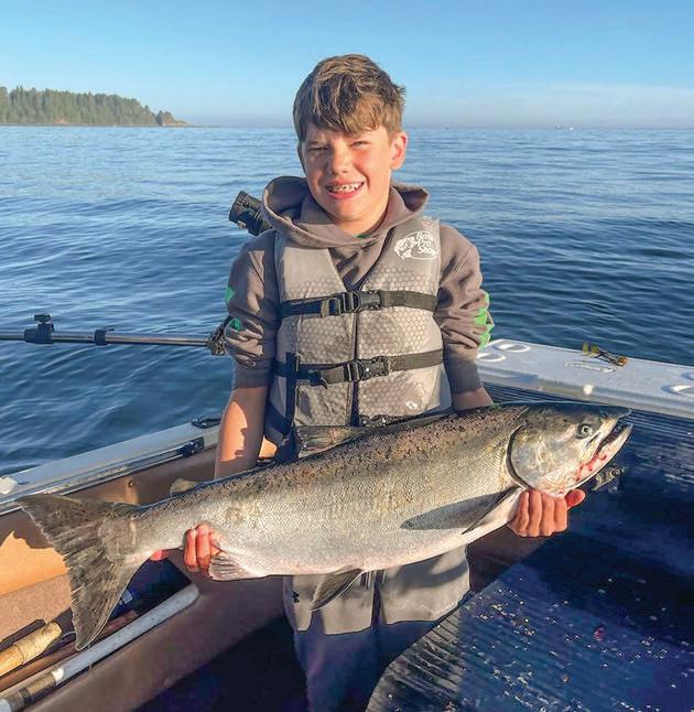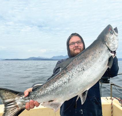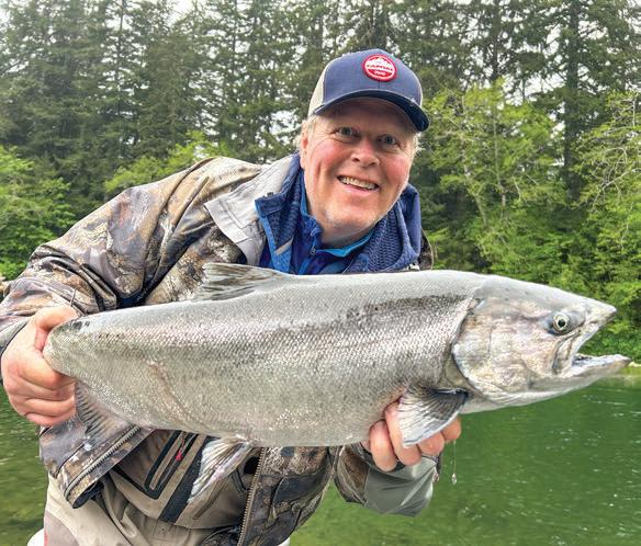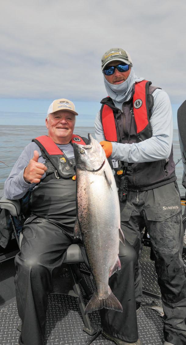 Bob Spaur shows off a nice Chinook that he caught on the Pacific off the Columbia River mouth during 2023’s ocean salmon season. (BUZZ RAMSEY)