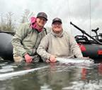 “With our rugged and wild coastline to our vast mountains and freshwater rivers that have some of the best salmon runs in the world, the PNW is truly a gem. It’s our job to do our part and to take care of this gift that we are given,” states Siryk, here with Damien and a big snag pulled out of the North Fork Lewis River. (VLAD SIRYK)