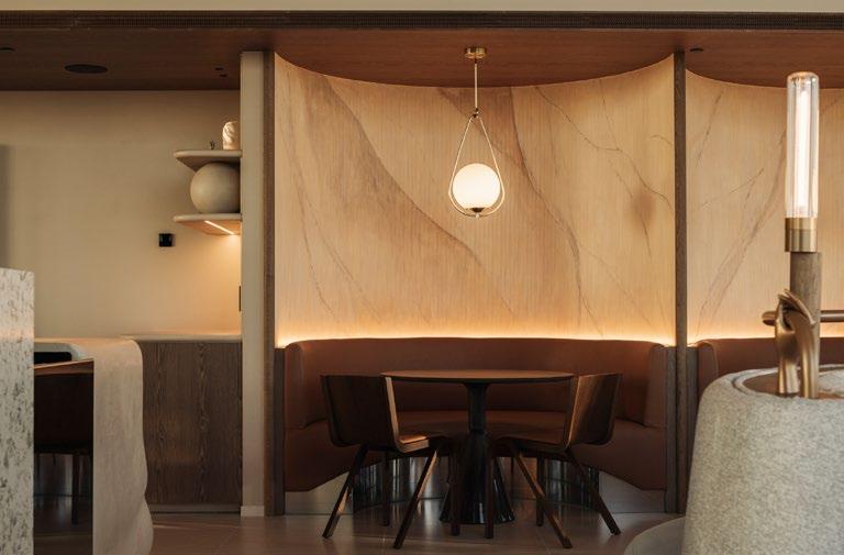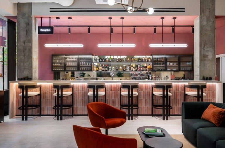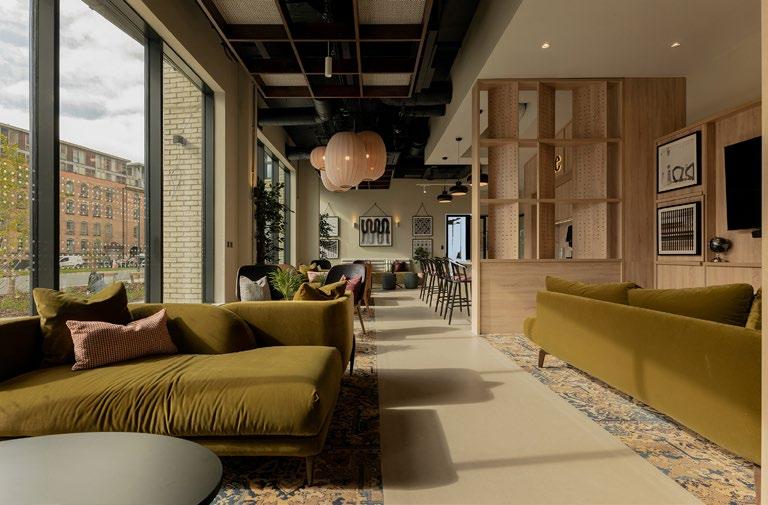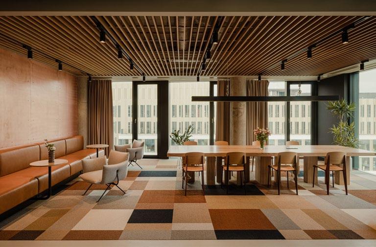 Modus and Fora transformed Henry Wood House into nine floors of vibrant, flexible workspace, blending contemporary design with historical context. The 1960s building features restored herringbone flooring, terrazzo columns, and a nature-inspired palette. Amenities include a corkfloored gym, courtyard garden, and adaptable communal spaces. Sustainability was prioritised through local materials and reuse, creating a refined, future-ready workspace respecting its