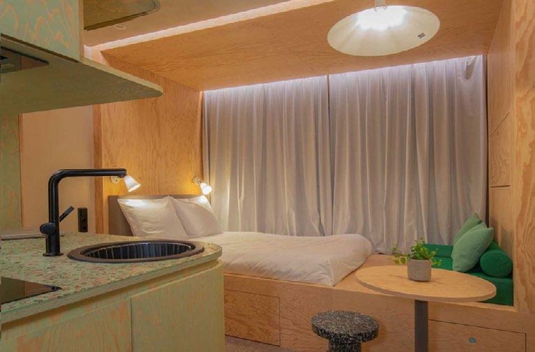 Designed by STAR strategies + architecture and BOARD, The Cabanon is a 6.89 sqm microapartment in Rotterdam, possibly the smallest with a spa. Converted from a 1950s attic, it includes four defined areas, an infrared sauna, whirlpool bath, and a large window. Built using mainly second-hand materials with sustainable transport, it exemplifies adaptive reuse and compact living.