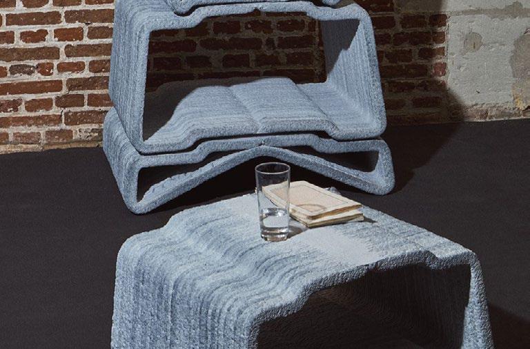 Trosne is a modular highchair created by Emmanuel Hugnot and hors-studio, 3D printed by XtreeE using Leatherock – a low-carbon biomaterial made from discarded leather and a mineral binder. Its tiered, parametric design elevates users to warmer air layers, reducing heating needs. Trosne showcases sustainable production and explores new uses for wastebased biomaterials like textiles and paper.