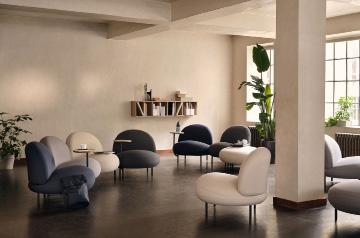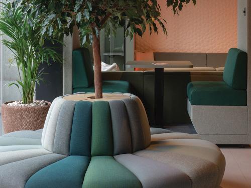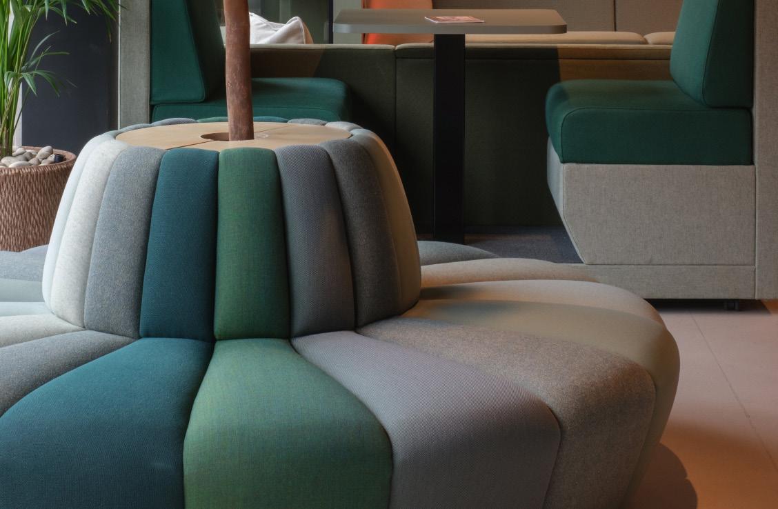 Maluma is a totally flexible seating system suitable for workplace, hospitality and education. The soft, circular form, with inset legs and supportive backrest, is what makes Maluma especially user friendly. The system can be configured using single seats or ottomans or linking together long strings of seating that can be adjusted to create the perfect shape, working around architectural barriers to create organic, user-friendly shapes that aid proprioception.