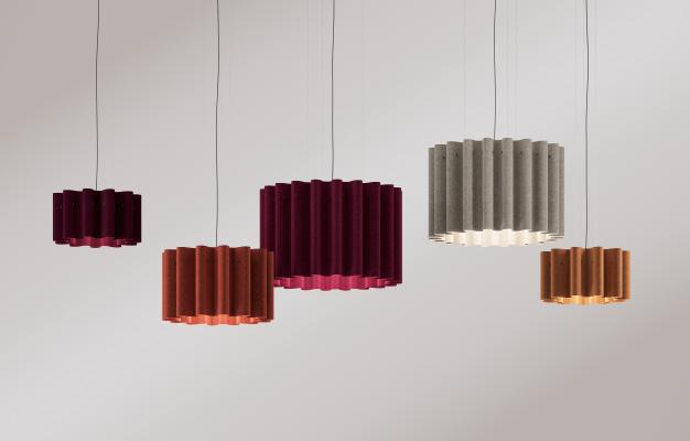 Impact Acoustic and atelier oï have developed Oloïd, a sustainable luminaire that combines acoustic excellence with innovative design. Using ARCHISONIC® Felt from upcycled plastic bottles, Oloïd is customisable in 32 colors, its threedimensional form is achieved through novel cutting and folding techniques.