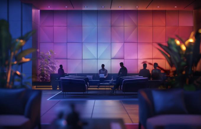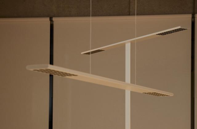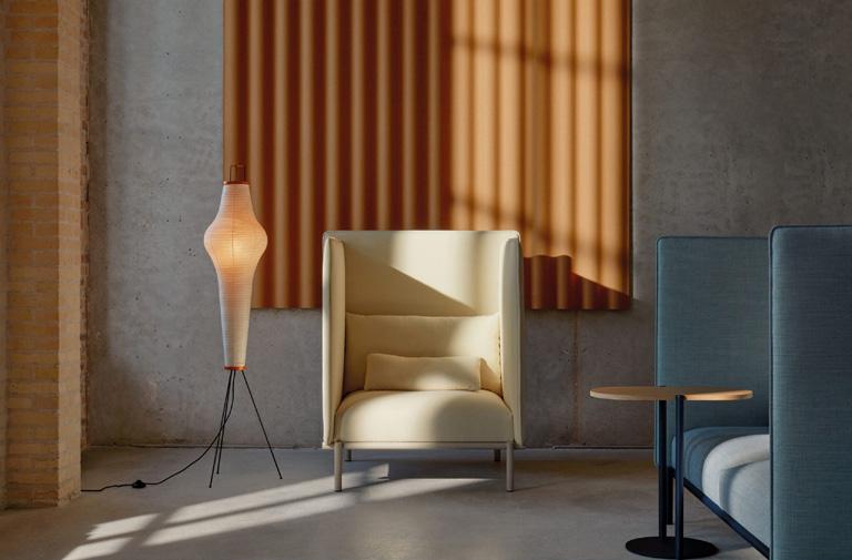 Abstracta takes a new approach to acoustic lighting — one that aims to create a peaceful atmosphere. The result is Vika, a sculptural floor screen that radiates atmospheric light while managing both low-frequency and highfrequency noise.