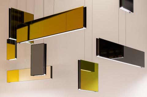 The MIRROR Suspension Collection is a completely unique approach in lighting – the blend of geometry with mirror surfaces in different finishes offers an art-like, sculptural design. This sculptural effect is emphasised when the light’s different formats are combined within a larger arrangement, suggestive of a modern chandelier.