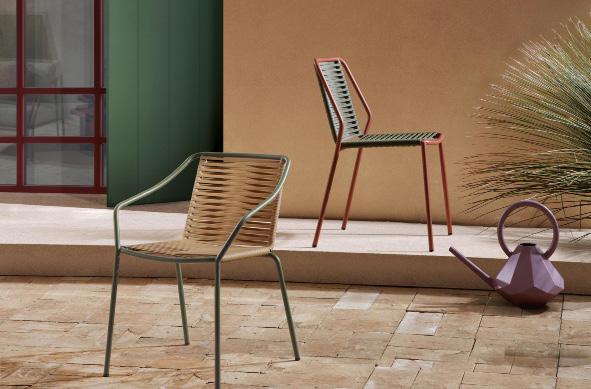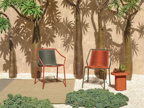 Philía is a collection of outdoor seating reminiscent of the traditional Italian garden chairs. It recalls relaxed lifestyle in open air, typical of the Italian “dolce vita” of the Sixties. A side chair and armchair featured with geometric lines blend with softer forms to mirror those of the human body, Philía is characterised by a steel tubular frame, while the seat and backrest are a woven PVC surface design that ensures elasticity and high resistance.