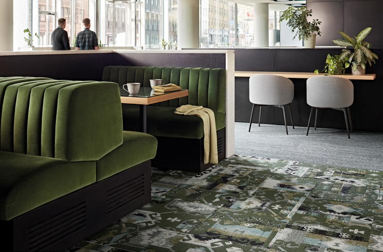 Fast Forward’s 14 versatile styles draw from the revival of 60s and 70s furniture design and popular ‘resimercial’ and maximalism trends. These include ornate rococo and renaissance visuals, retro patterns with scribbles and boxes, vintage-inspired patchwork styles, and traditional Turkish motifs – all made from 100% recycled content with Interface’s carbon negative cQuest Bio backing.