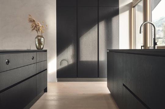 The Rauvisio Noir surface is soft to touch yet incredibly durable, with a high level of resistance to fingerprints, scratches, microscratches, heat, moisture and impact. It withstands the pressure of everyday use, as confirmed during thorough AMK-compliance testing by TÜV Rheinland. RAUVISIO noir is antibacterial and easy to clean, fully compliant with PEFC’s requirements for sustainable forestry and has minimal light reflection.