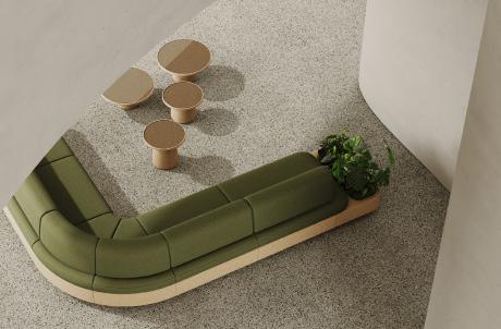 Sustainably made with cork waste from the production of wine stoppers, Tejo is Isomi’s new recyclable modular sofa system designed by Paul Crofts. Tejo offers elegance, comfort and versatility, helping to preserve Portugal’s cork forests and marking a major step towards the circular economy. The sofa system includes a host of optional elements that enhance its function, including table units and planters, privacy screen dividers and integrated power.