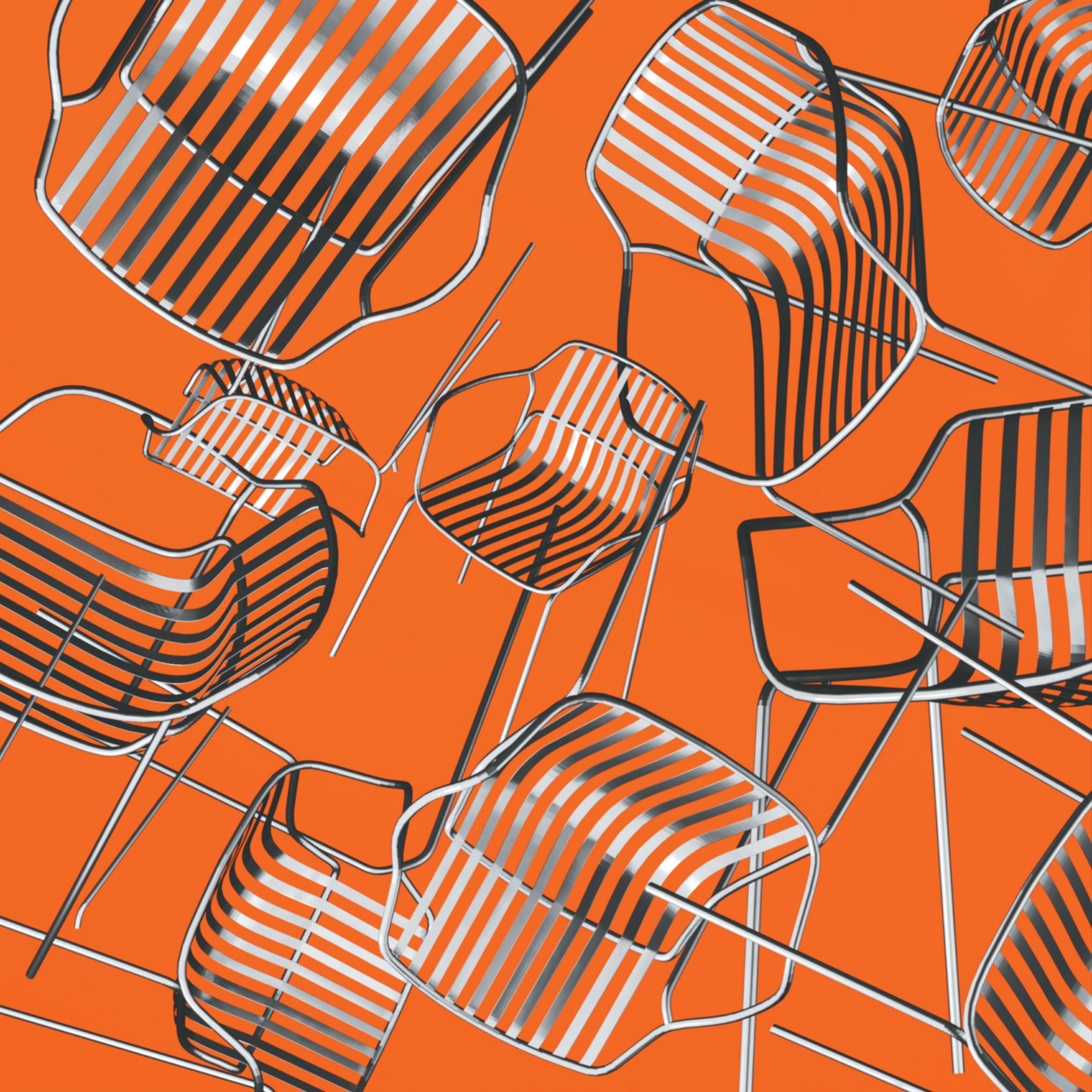 The issue’s cover design launches Brunner’s Crona Steel stacking chair into the air, causing its slats and frames to entangle and bisect. The resulting composition gestures to ‘M’ ‘I’ ‘X’ without being explicit, allowing the geometry of the furniture to speak for itself.