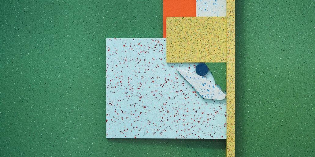 Inspired by the geometric design of Lune from Amtico’s new LVT Signature range, Trifle* has reimagined the pattern motif as a mixed media art piece that imitates a flat-lay – combining Amtico flooring with fabric offcuts and studio surplus to give new life to otherwise discarded materials; as well as emphasising circularity. “We loved the classic shapes of Lune’s design from Amtico and were inspired by the brand-new marble palette,” comments Trifle*’s Nadia Themistocleous. “We ‘mixed’ things up by utilising offcuts from past projects, picked because they evoked a sense of marble veining. We were even inspired to create our own ‘marble’ samples from leftover paints – the result a physical piece of art we will display proudly in our studio.”