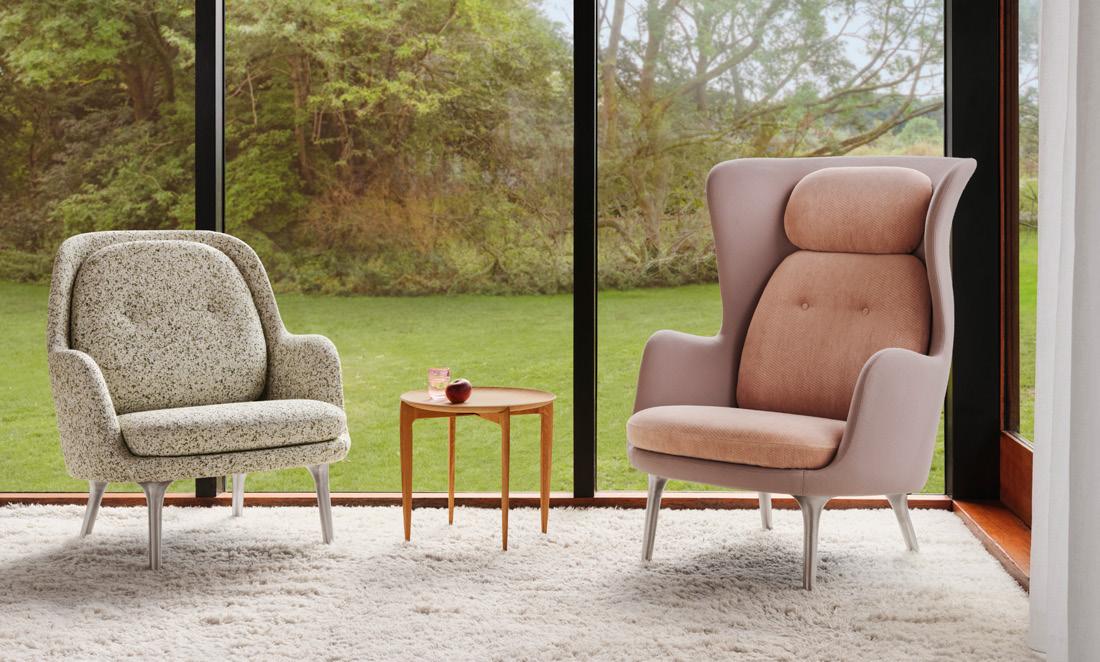 Hayon’s RO Chair and Sofa, for example, named after the Danish word for ‘tranquility’, are a regular fixture in plush hotel lobbies and guestrooms, as much as stalwarts of the contemporary