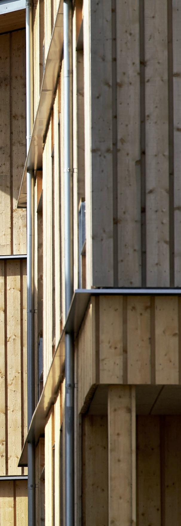 Træbyggeriers CO2-regnskab er ofte markant bedre end tilsva rende byggerier opført med andre byggematerialer, og så er byggetiden langt kortere. Det har en positiv effekt på tid og omkostningsniveauet, at træelementer hverken skal hærde eller tørre. Disse fordele alene gør træbyggeri attraktivt.