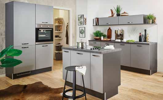 Moderne EINBAUKÜCHE in grafit kombiniert mit Fronten in achatgrau, ca. 120+240+120x60 cm, inkl. Elektrogeräte-Set mit Geschirrspüler. Einbauspüle und Armatur gegen Mehrpreis. Andere Größen, Farben und Zusammenstellungen zum individuellen Preis planbar.