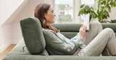 Die große Kopfstütze sorgt für die perfekte Kopfposition beim Lesen. Gegen Mehrpreis.