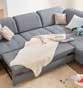Moderne POLSTERECKE , Stoffbezug in Cord hellgrau, ca. 293x201 cm, inkl. Kopfteilverstellung. Kissen, Vorziehbank, andere Farben und Zusammenstellungen zum individuellen Preis erhältlich.