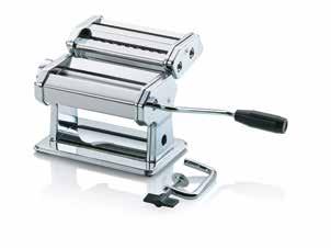 Praktische NUDELMASCHINE, für die Herstellung Ihrer eigenen, hausgemachten Pasta. Für Standfestigkeit sorgen ein rutschfester Sockel und eine Tischklemme für Tischplatten bis 7 cm, Walzen und Gehäuse aus Chrom und Edelstahl, Teigdicke: 9 verschiedene Einstellungen (0,3 - 3 mm) Teigbreite: maximal 14,5 cm.