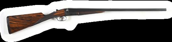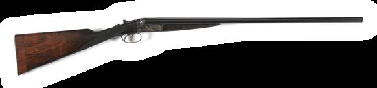 Dovetail lump barrels fit with a bead front sight on a smooth concave rib engraved “JOSEPH BOURNE & SON. BIRMINGHAM” with light acanthus scrollwork at rear of rib, extending onto square rib extension, and stiff leaf engraving over breeches. Concealed third fastener. Barrel flats with British Birmingham proofs for a nitro proofed 12 gauge with 2 - 1/2” chambers (lengthened to 2 - 3/4”), a nominal .736 IBD, proofed at 1 - 1/8 oz of shot and 3 tons. Splinter forearm with reinforced Anson style plunger release with point pattern checkering about a central escutcheon. Exterior iron with light acanthus scroll engraving, interior iron with matching serial number. Boxlock action with Birmingham view and proof marks on action flats and engraved with acanthus scrollwork and bouquets of roses. Automatic safety with “SAFE” inlaid in gold ahead of slide. Double triggers protected by a long tang trigger guard engraved en suite. Walnut stock of a straight grain constructed with checkered sidepanels with teardrops, point pattern checkering about the straight grip, silver oval at toeline, and a serrated horn buttplate. CONDITION: Barrels are well reblued with the vast majority of the finish with some rubs and handling marks, some areas of fine oxidation visible, primarily at the muzzle. Stocks polished bright with some surface discoloration, engraving crisp. Bottom metal and trigger guard tang reblued. Stock reoiled with scattered handling marks and impressions, some heavier ones toward butt. Mechanically fine, ejectors are strong and in time, bores are very good with some moderate frosting, heavier in left barrel. 1,000 - 2,000